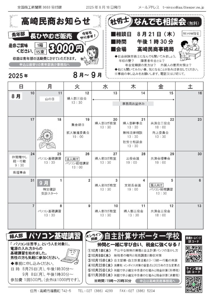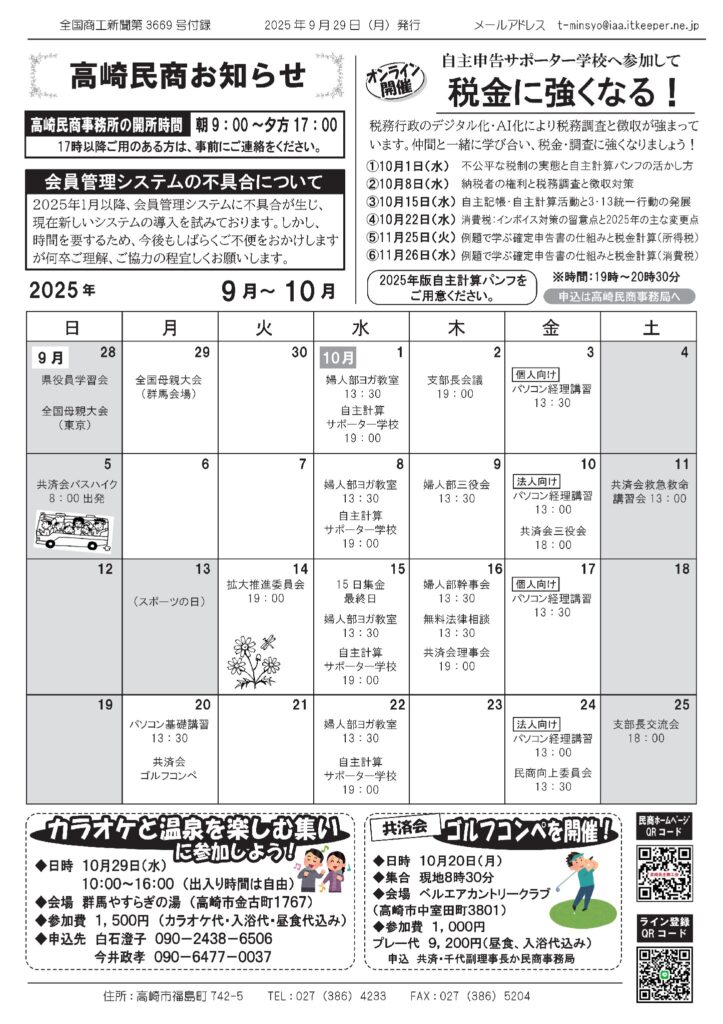 2025年9~10月の活動日程 2023.08.192025.10.012025年7月28日、高崎民商お知らせ2025年7月14日日程表ダウンロード2025年6月30日日程表ダウンロード2025年6月16日、高崎民商お知らせ2025年3月31日、高崎民商お知らせ2025年3月17日、高崎民商お知らせ2025年3月10日、高崎民商お知らせ2025年2月24日、高崎民商お知らせ2025年2月10日、高崎民商お知らせ2025年1月27日、高崎民商お知らせダウンロード2025年1月13日、高崎民商お知らせダウンロード